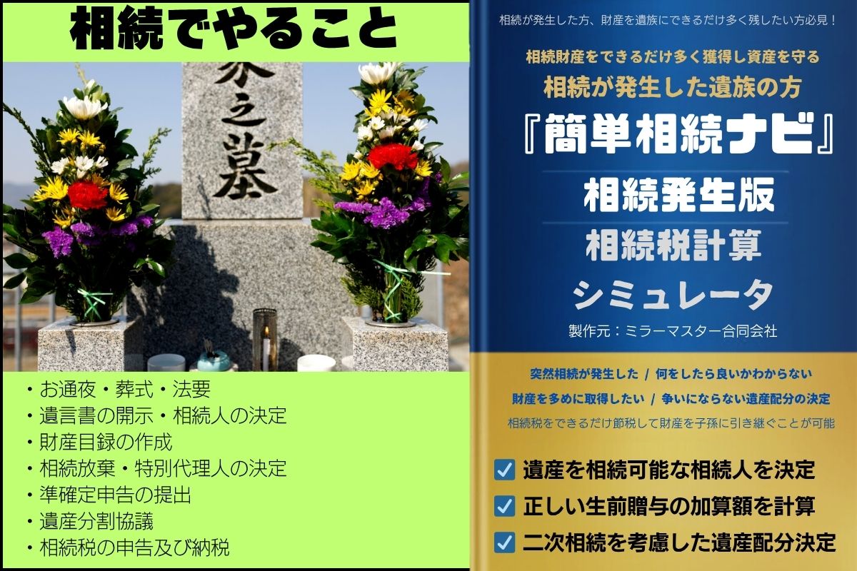 - 「簡単相続ナビ」で相続税申告の手続きが理解でき、自分で申告したため税理士費用を100万円以上得しました。